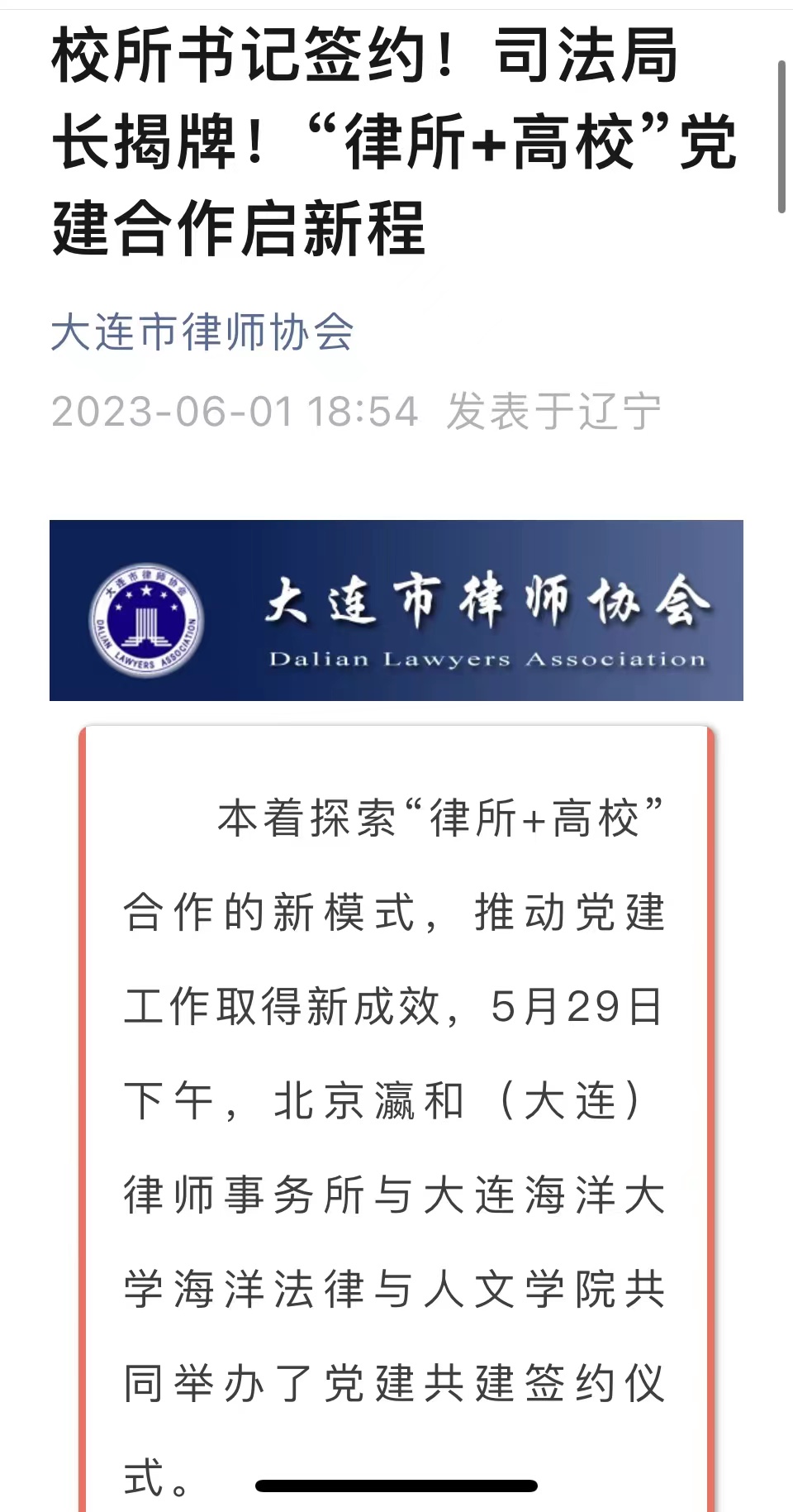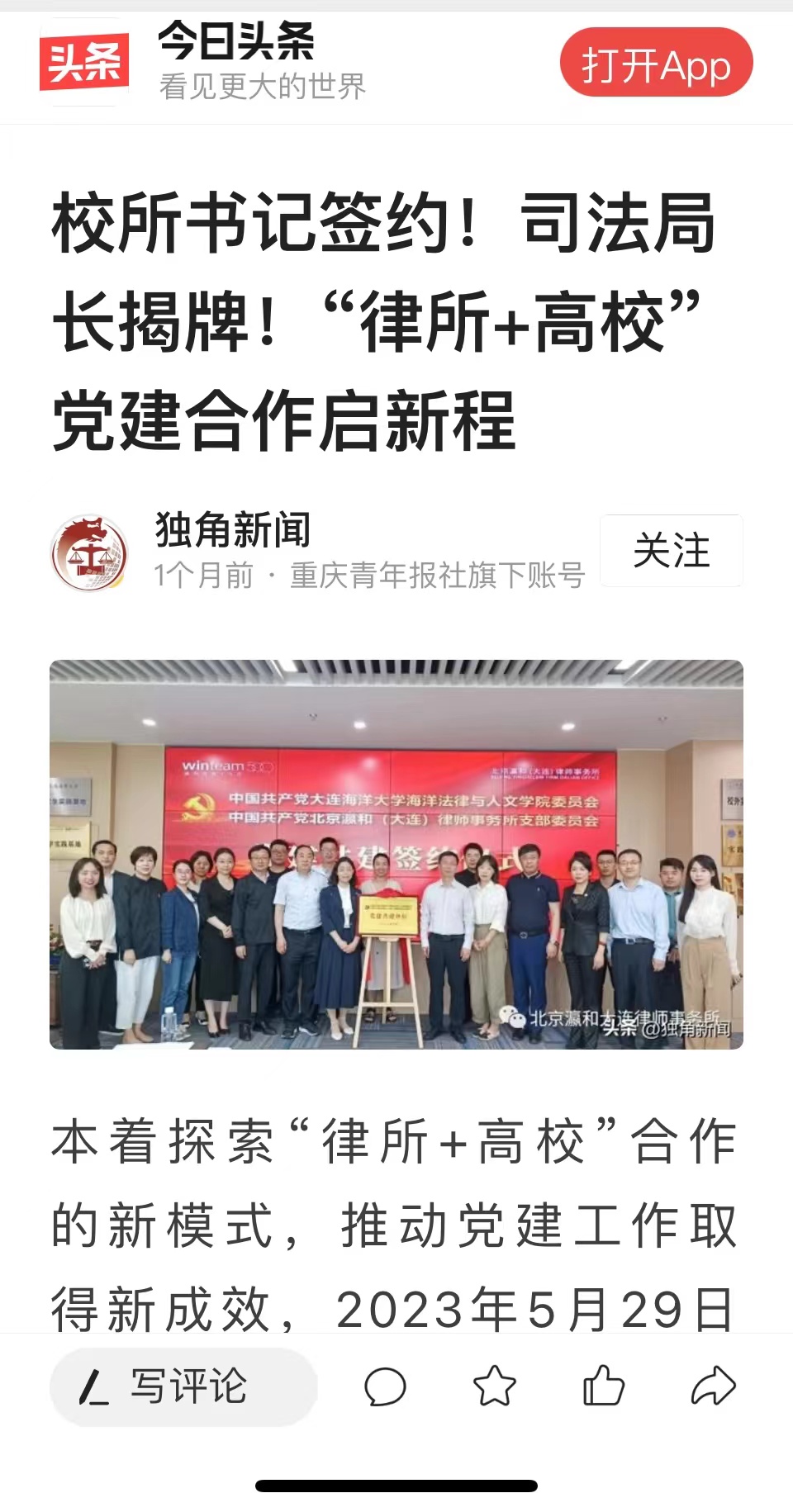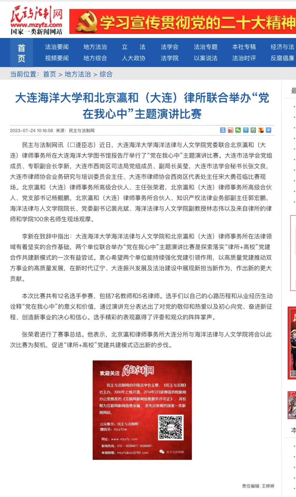 5月-7月,民主与法制网、中经在线、独角新闻等媒体以及大连市律师协会等官方微信公众平台纷纷报道了公司365英国上市公司与北京瀛和(大连)律师事务所联合开展的共建签约、联合主题党日、庆“七一”主题演讲比赛等党建共建系列活动。其中“中经在线”关于校所党建共建签约报道的点击率已超100万次。