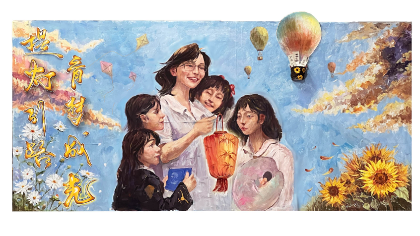 公司员工展示了以师生互动为主题的《提灯引路,筑梦成光》海报作品。该作品色彩丰富、内容充实、构思新颖,生动形象地描绘出老师和蔼可亲的模样和同学们积极向上的面貌。作品在比赛现场线上进行展出,并有专业的讲解员进行讲解。经评委评审《提灯引路,筑梦成光》海报作品荣获一等奖。