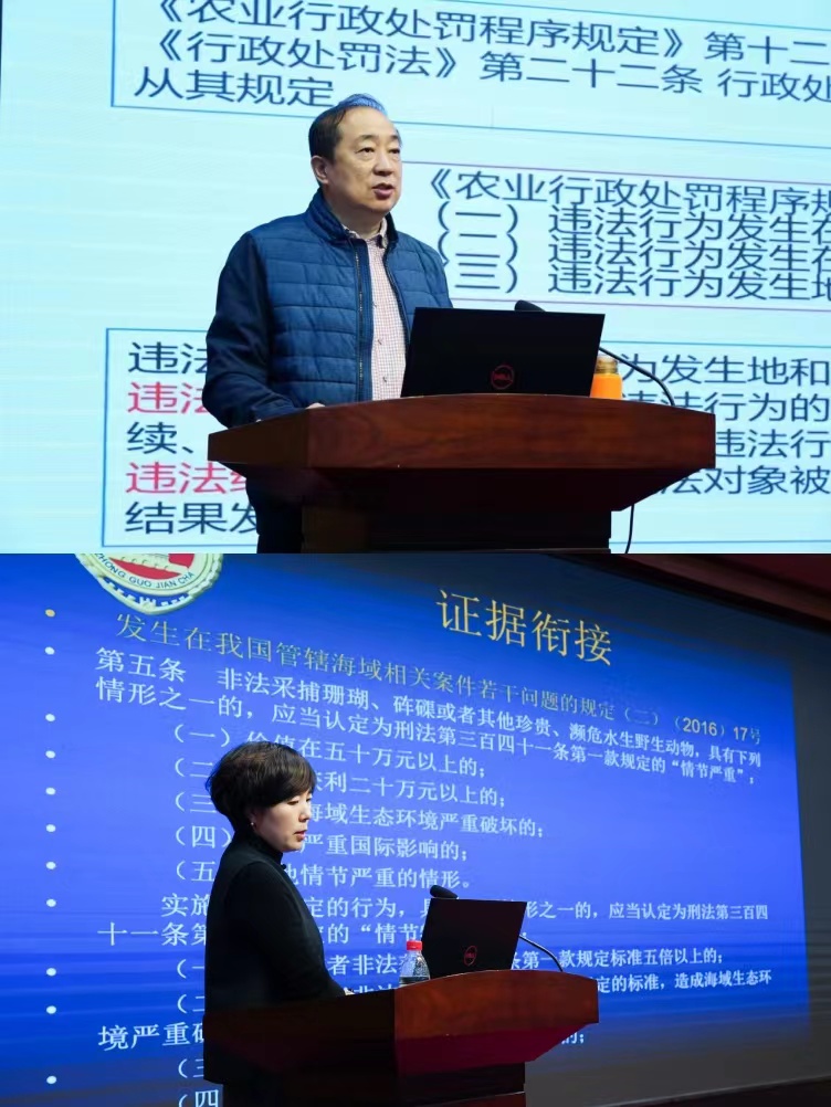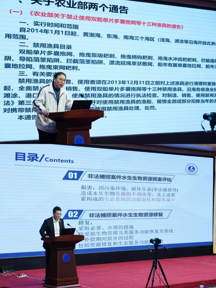培训邀请相关领域专家学者及实务工作者进行了9场讲座。讲座主要围绕渔政执法实践中重点、难点问题展开,包括渔政执法重点问题及案例解析、渔业行政执法案卷规范与文书制作、部分省市案卷评查点评及解析、涉渔公益诉讼、非法捕捞案件涉案物品认(鉴定)实务、非法捕捞案件水生生物资源损害评估与修复实务、渔业行政执法与刑事司法衔接及案例解析、办案实务经验交流、渔业行政执法裁量基准、执法人员法律风险防控等。通过授课及现场互动交流的方式,解答实践中疑难问题,收效良好。培训过程中,学员们还参观了公司农业农村部北方海水增养殖重点实验室。