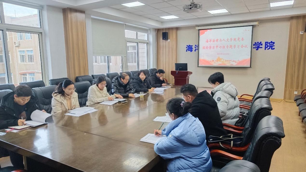 12月26日,海洋法律与人文公司党委在公司会议室召开2023年12月份理论学习中心组专题学习会议。公司党委理论学习中心组成员参加会议,会议由党委书记高雪梅主持。