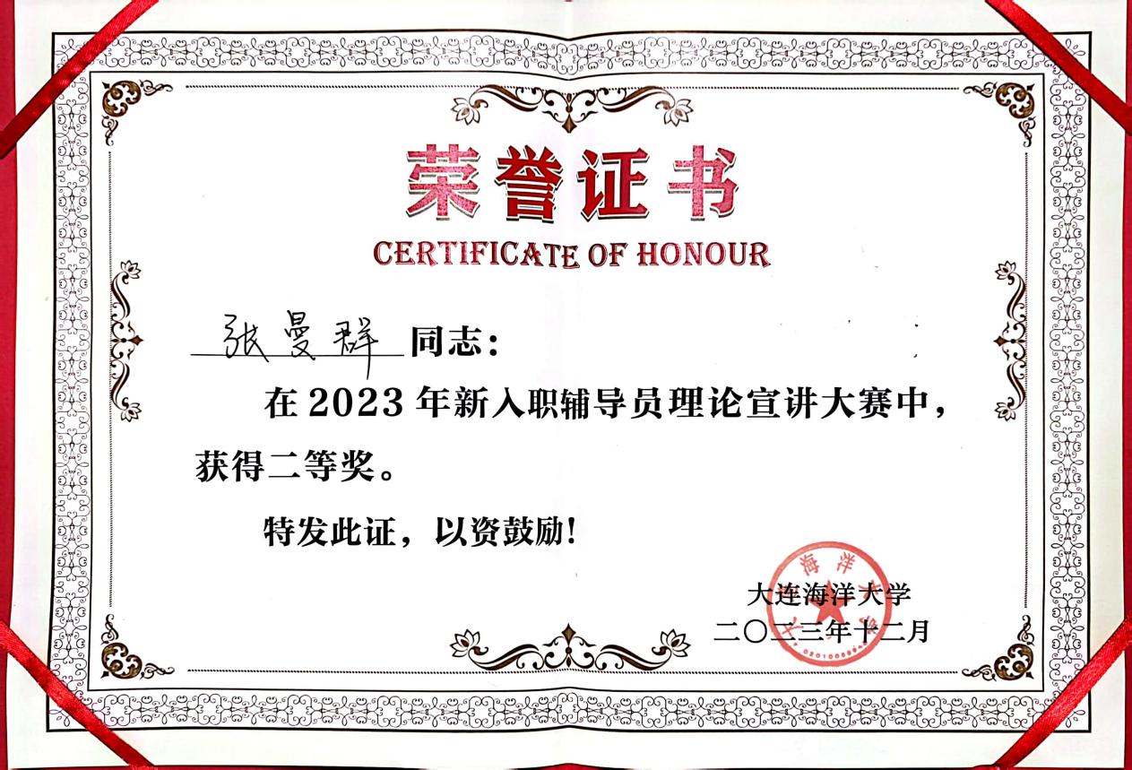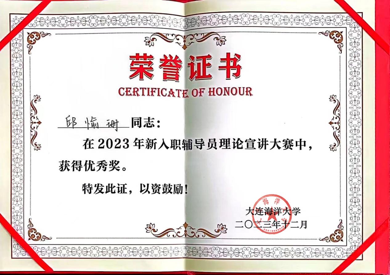 在2023年新入职辅导员理论宣讲大赛中,张曼群获得二等奖,邱愉珊获得优秀奖。