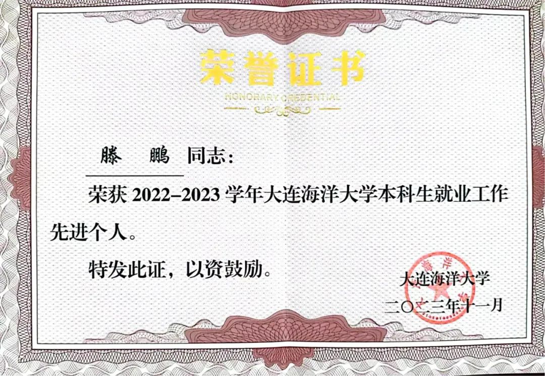 公司获得校2022-2023学年老员工思想政治教育工作先进基层单位、本科生就业工作先进集体、规章制度教育获得优秀组织单位荣誉称号。