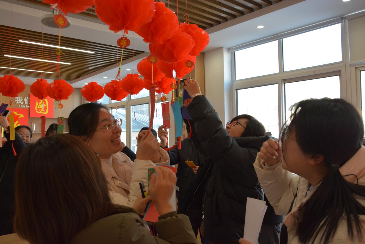 活动现场气氛热烈,以灯笼串联的S形龙腾造型别具一格,寓意着新的一年龙腾四海,蒸蒸日上;欢快喜庆的音乐衬托出浓郁的节日氛围,各式甜品摆台、饮料点心,满足了大家的味蕾享受;精心设计的猜灯谜和中华传统文化知识竞赛呈现了传统文化与现代创意的完美结合。