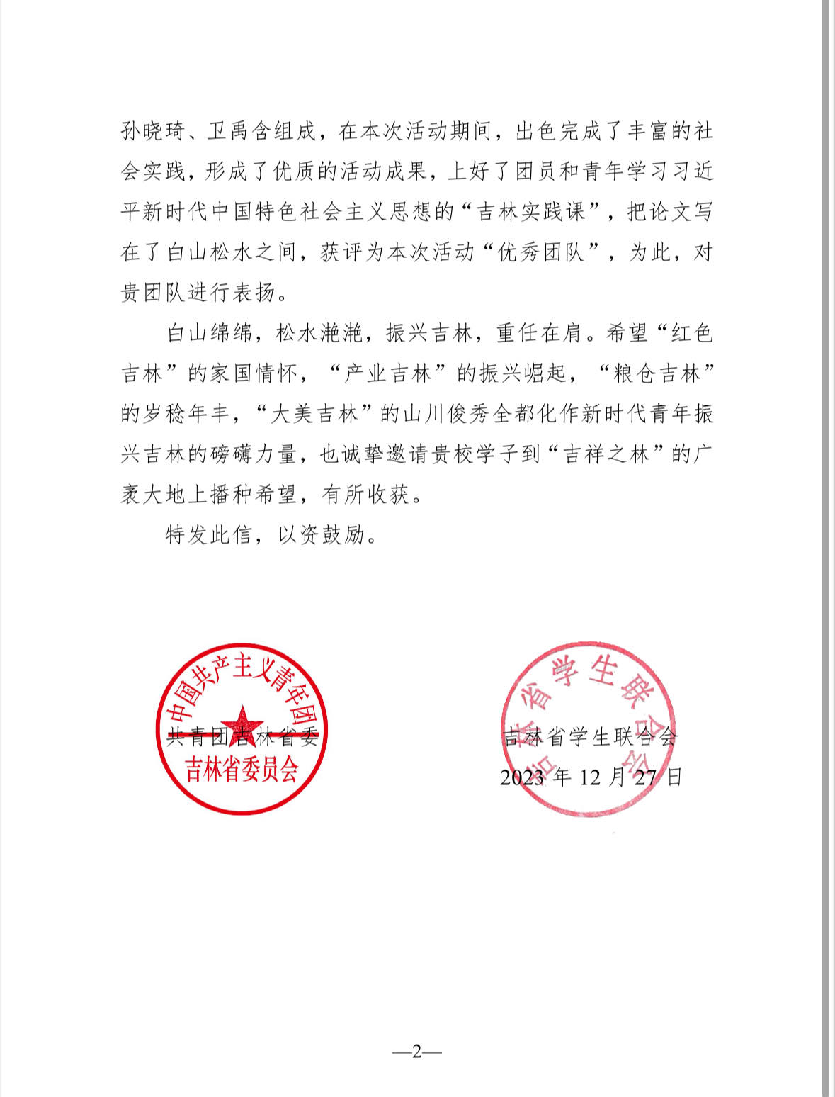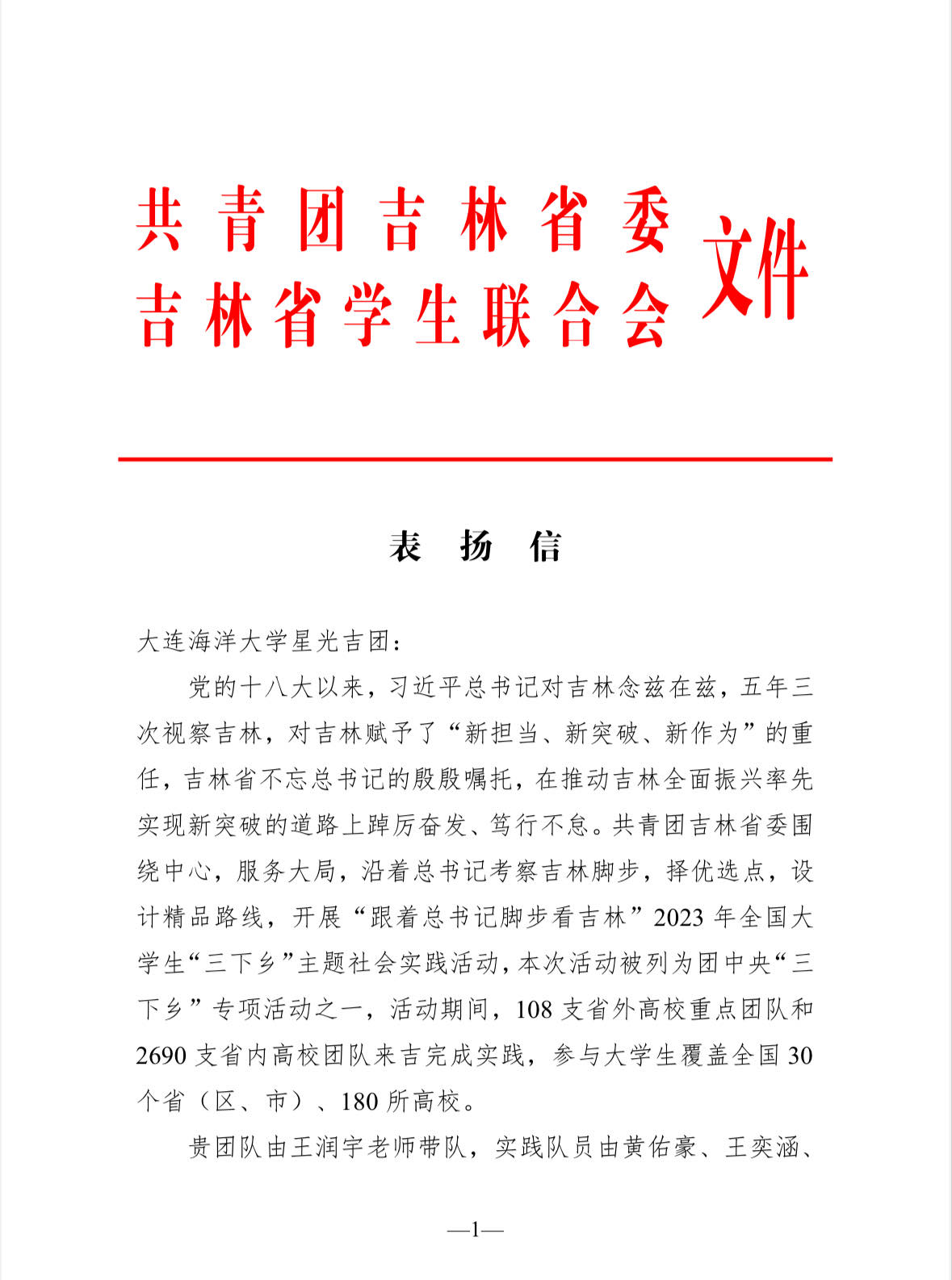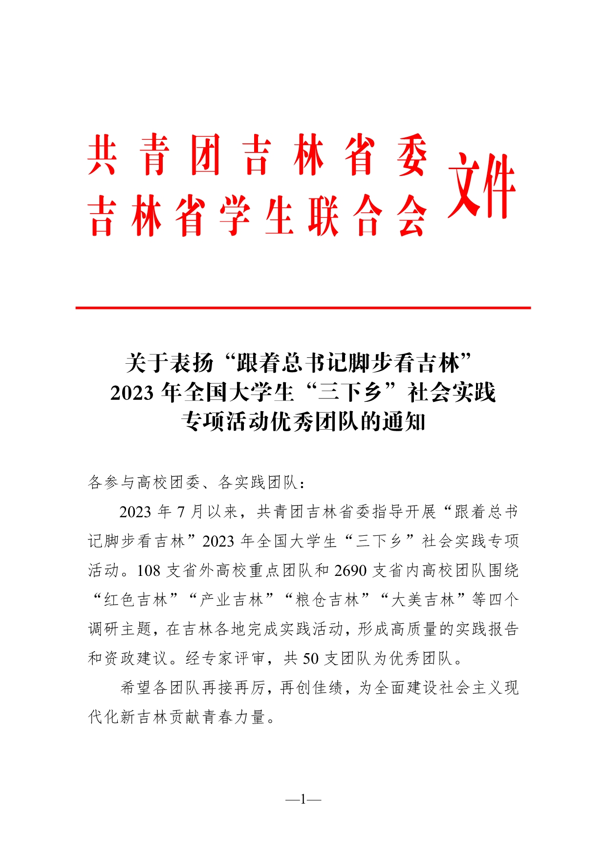 近日,共青团吉林省委、吉林省员工联合会向公司发来表彰通知和表扬信,365英国上市公司“星光吉团”团队荣获“跟着总书记脚步看吉林”2023年全国老员工“三下乡”社会实践专项活动优秀团队荣誉称号。