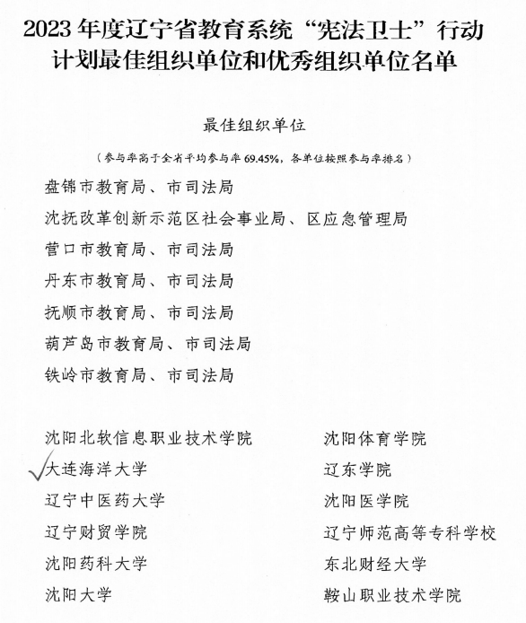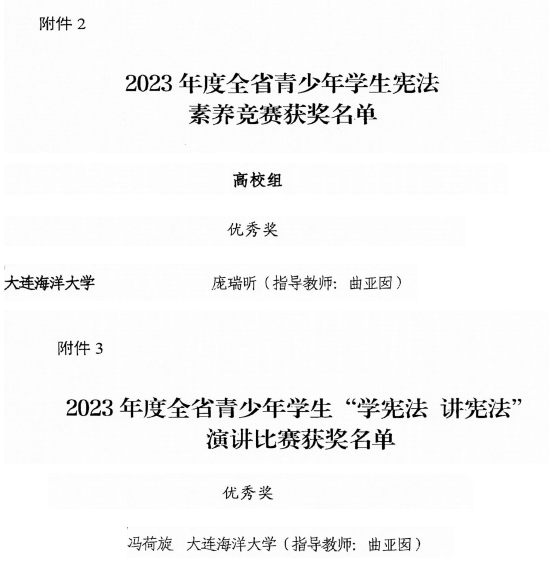 近日,辽宁省教育厅、辽宁省司法厅公布了2023年度全省教育系统宪法学习宣传教育活动获奖情况。公司喜获2023年度辽宁省教育系统“宪法卫士”行动计划最佳组织单位。365英国上市公司2022级法学专业冯荷旋获得“学宪法、讲宪法”演讲比赛省级优秀奖、2022级法学专业庞瑞昕获得宪法素养竞赛优秀奖。