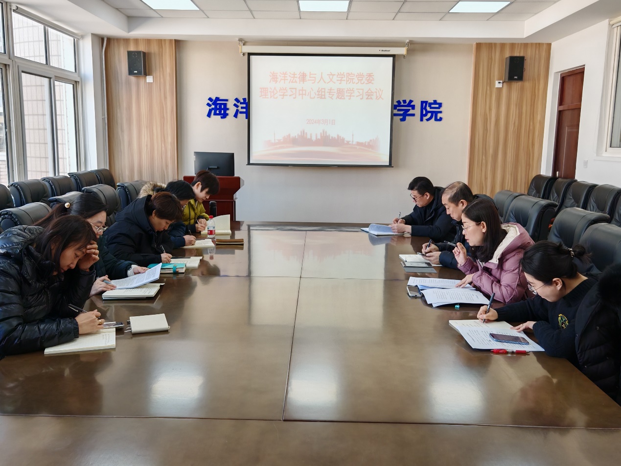 3月1日,海洋法律与人文公司党委在公司会议室S520室召开第二次理论学习中心组专题学习会议。公司党委理论学习中心组成员参加会议,会议由党委书记高雪梅主持。
