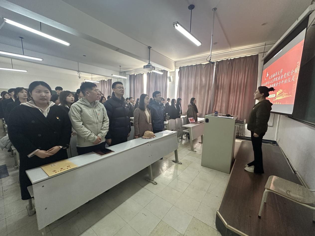 随着全体老师和同学们共唱国歌,行注目礼,开班仪式正式开始。会议伊始,滕鹏宣读了积极分子培训纪律要求,希望大家能够在培训期间严守规矩,并在日后生活中将它内化于心,外化于行。随后,本科生高雪婷代表全体入党积极分子发言,表示将认真接受培训,遵守纪律,努力学习,积极向党组织靠拢。