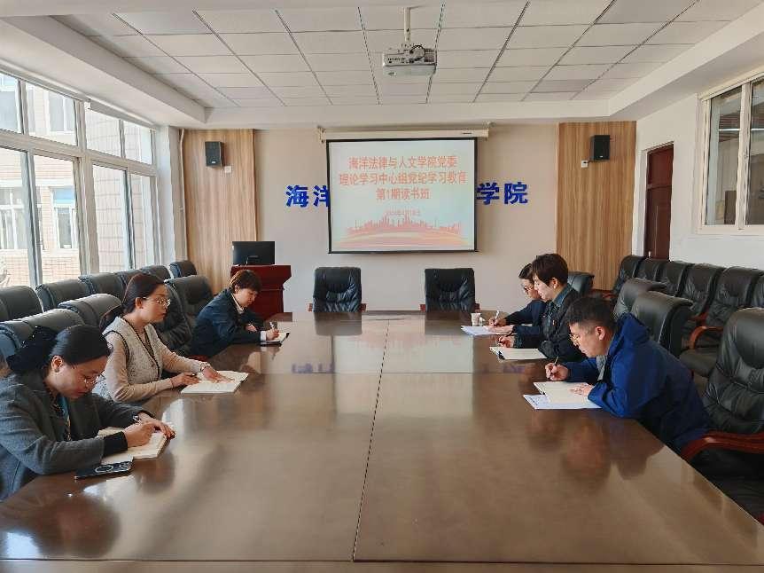 4月18日,海洋法律与人文公司党委在公司会议室S520室召开党纪学习教育第1期读书班。公司党委理论中心组成员参加会议,会议由公司党委书记高雪梅主持。