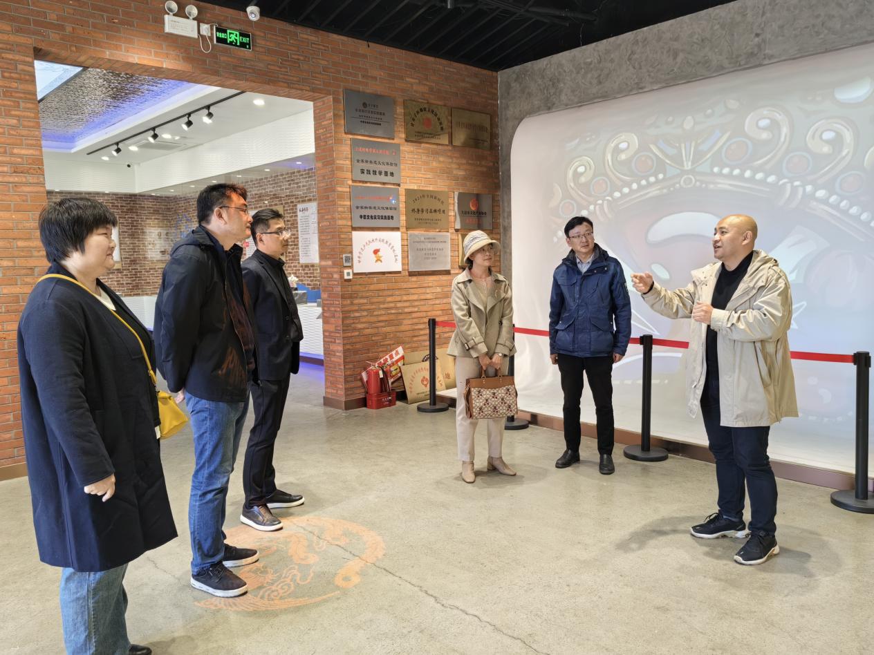 高雪梅一行参观了体验馆内非遗文创产品并与园区企业进行了互动交流,深入了解其经营情况和发展规划。校企双方共同探讨了如何将公司专业特色与文化产业发展深度融合,加强海洋文创产品设计与开发,共同推动社会主义文化事业和文化产业繁荣发展。
