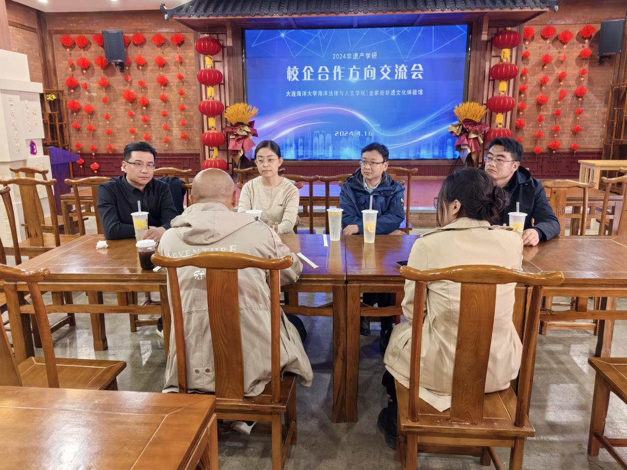 4月16日,海洋法律与人文公司党委书记高雪梅、副书记滕鹏,视觉传达设计教研室主任张仕春、副主任陈会岗、教师高旗等一行5人赴大连金家街非遗文化体验馆考察交流。王雷馆长予以热情接待。