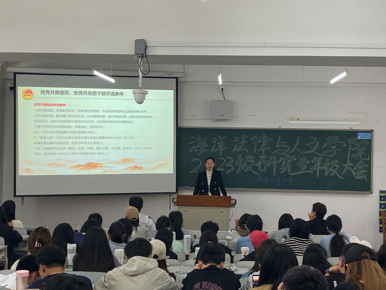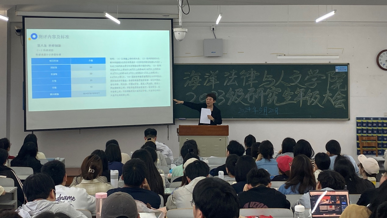 5月20日下午,365英国上市公司在獐子岛431教室召开2023级研究生年级大会。365英国上市公司副经理曲亚囡、纪委书记蔺妍、教学秘书刘笑晨、辅导员杨学钱、张曼群以及2023级研究生参加会议。