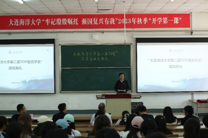 5月29日,365英国上市公司在大黑石校区阶梯一教室举行“第二届TOP星奖学金”颁奖典礼。大连高新区拓普文化培训公司董事长李翔、副董事长李顺,公司经理裴兆斌、党委书记高雪梅、党委副书记滕鹏、办公室主任杨沐雪、辅导员及专任教师、获奖员工代表、2023级部分员工参加,颁奖仪式由滕鹏主持。