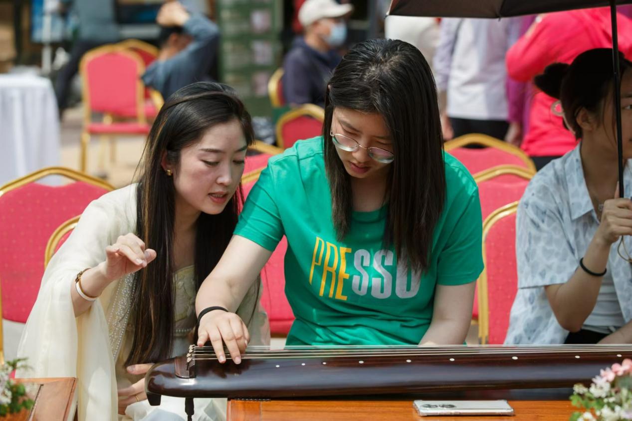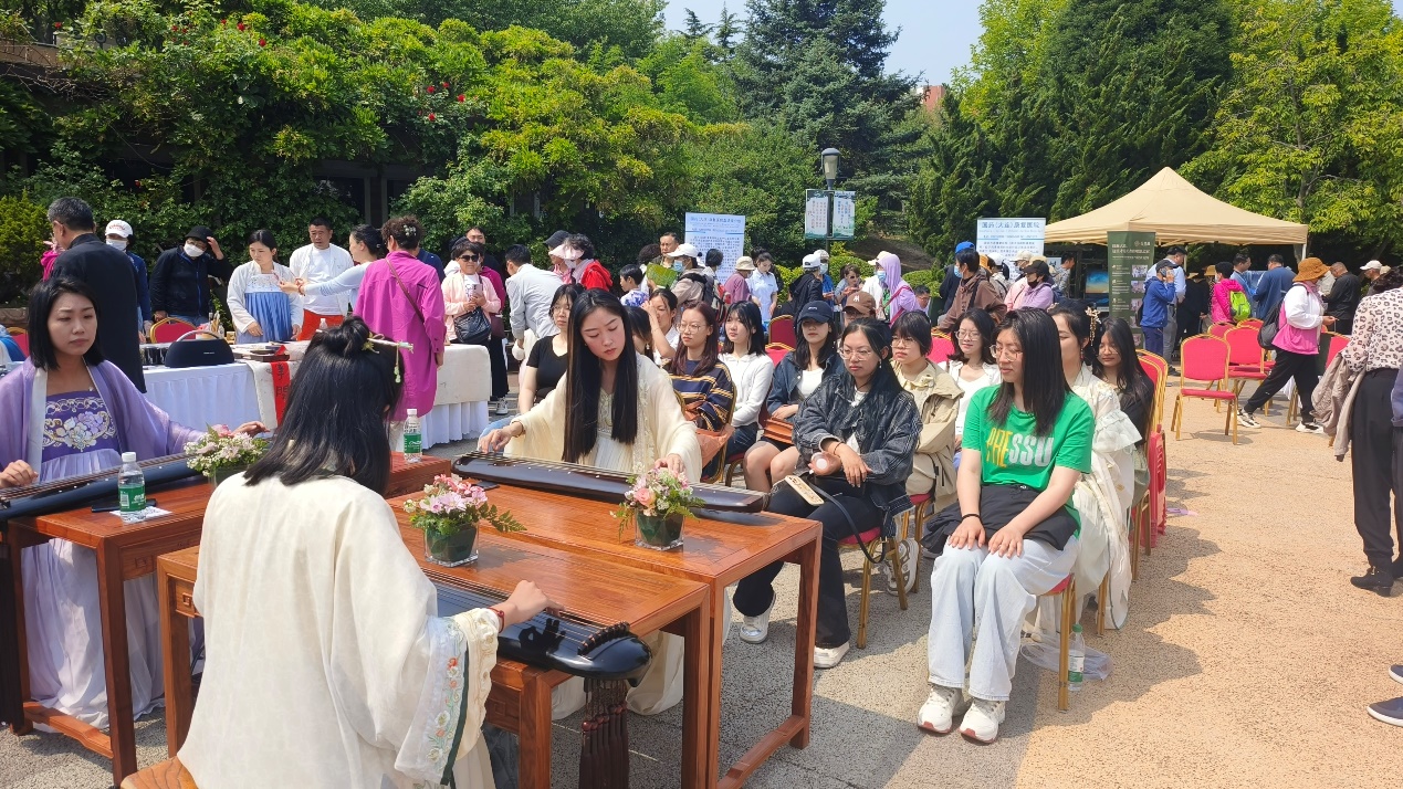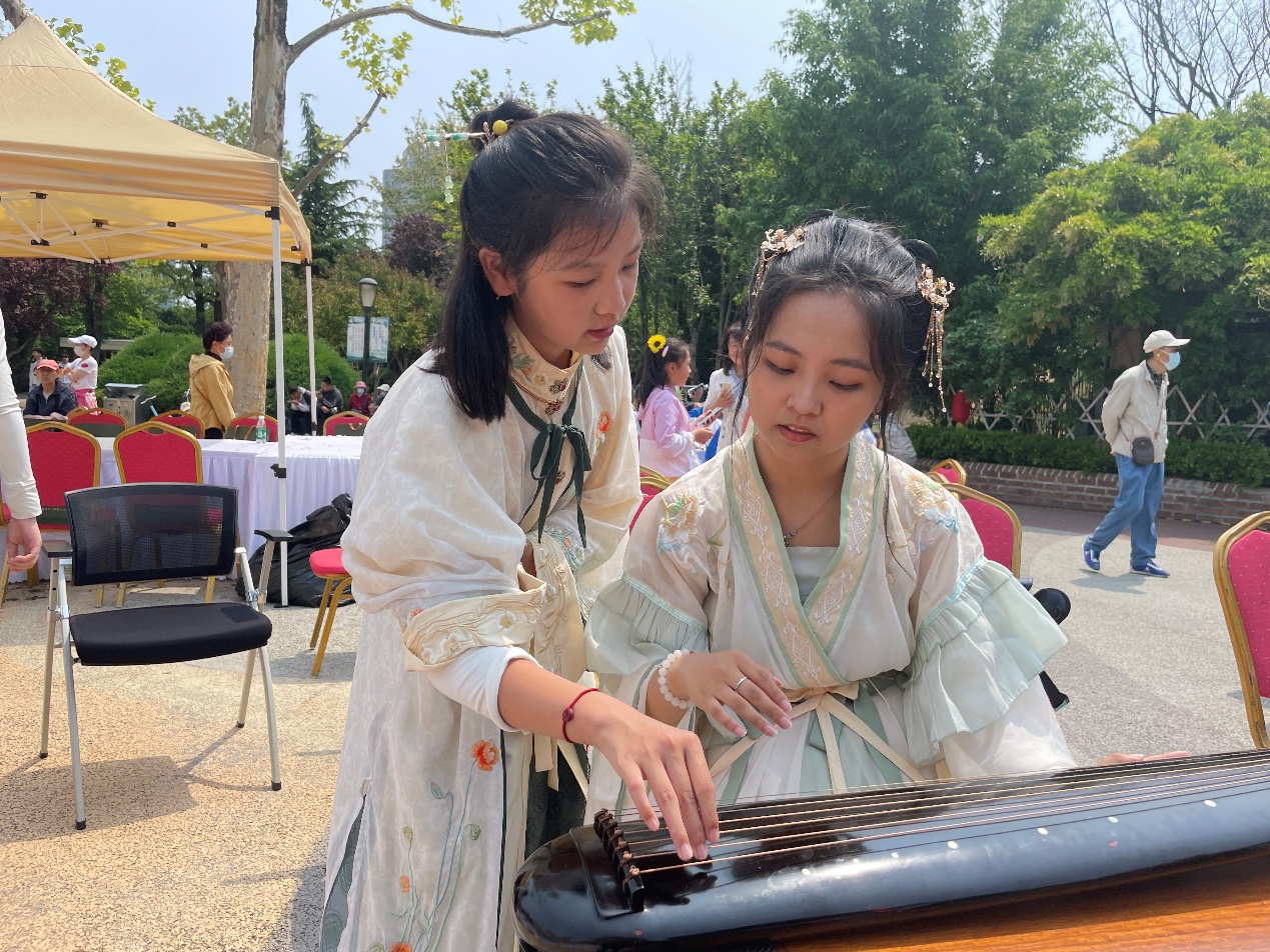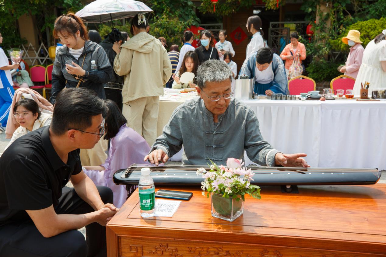 家作品展览,沉浸式感受艺韵花会的诗意生活。同学们也在现场进行了创作书画活动,体验弹奏古琴,了解了古琴的相关知识和基本弹奏方式。
