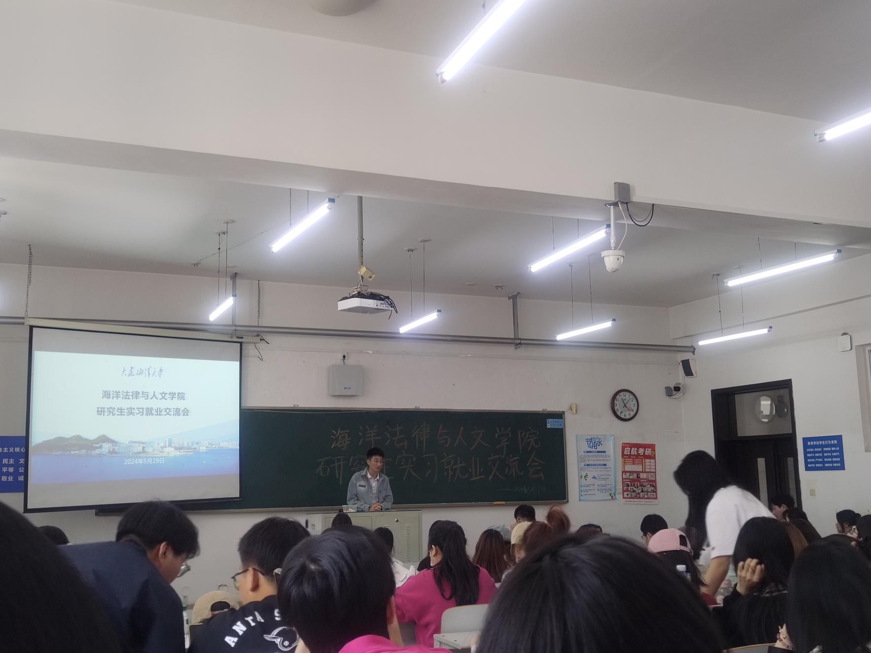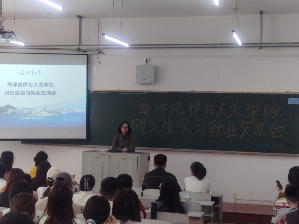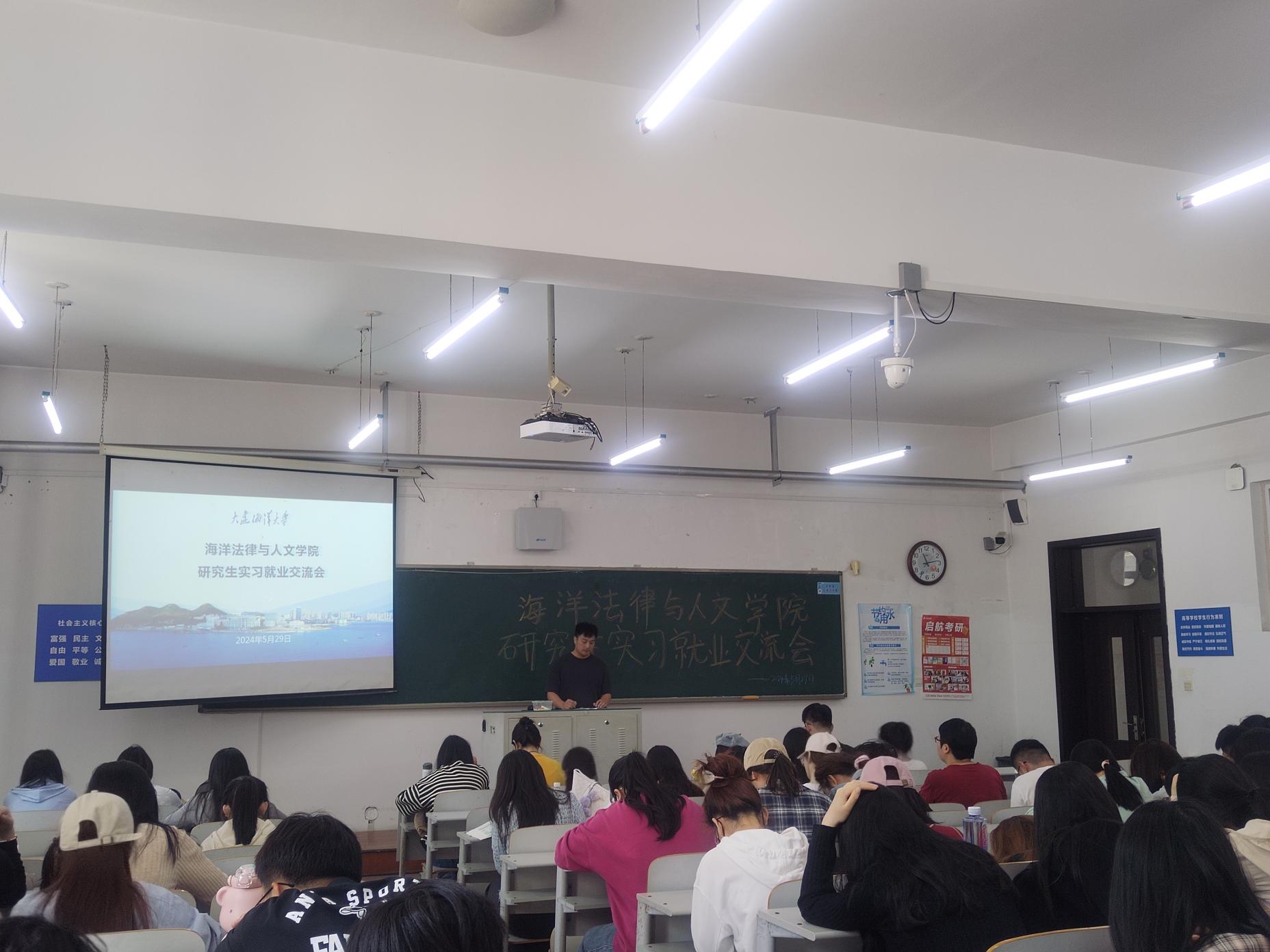 5月29日,365英国上市公司在獐子岛104教室召开研究生实习就业交流会,2021级四名优秀毕业研究生和2022级两名研究生从实习、就业、法考、小论文发表等方面分别进行经验分享。辅导员杨学钱、张曼群以及公司2022级法学、2022级法律(法学)和2023级全体研究生参加会议。