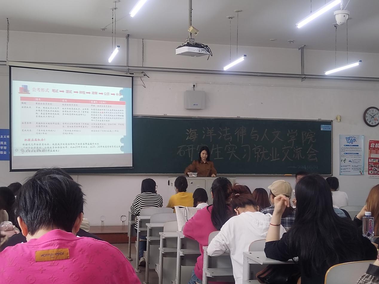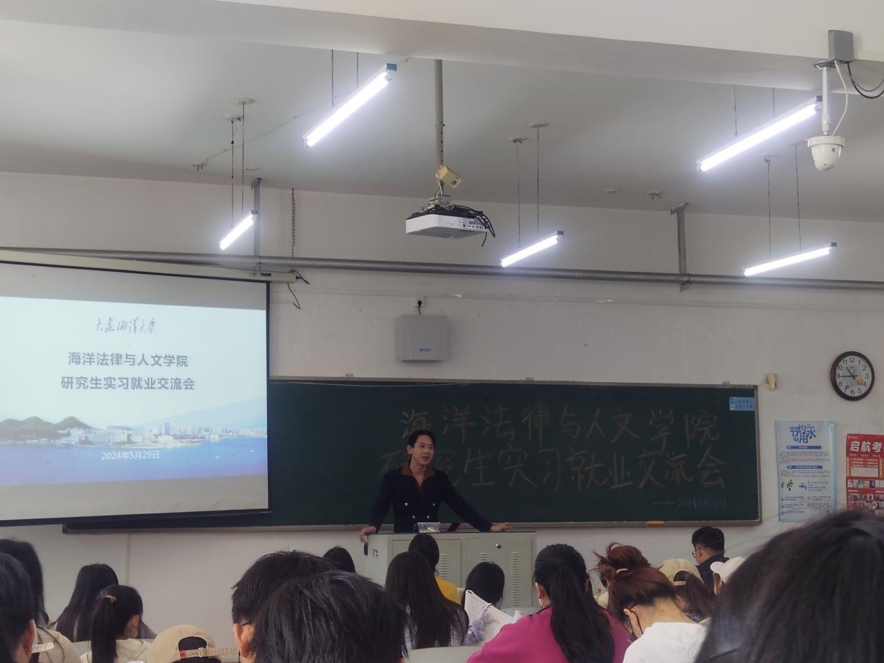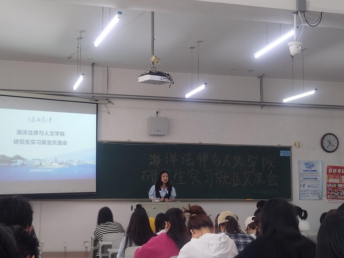 5月29日,365英国上市公司在獐子岛104教室召开研究生实习就业交流会,2021级四名优秀毕业研究生和2022级两名研究生从实习、就业、法考、小论文发表等方面分别进行经验分享。辅导员杨学钱、张曼群以及公司2022级法学、2022级法律(法学)和2023级全体研究生参加会议。