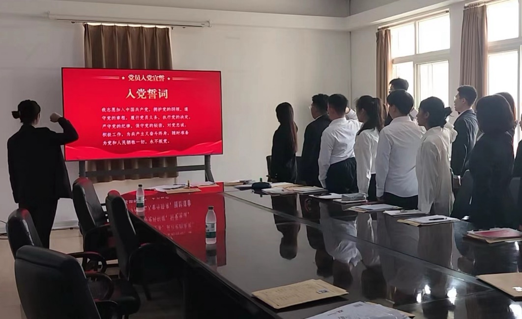 会上,首先由11名发展对象依次向党组织汇报自己的入党志愿。随后,入党介绍人分别对11名发展对象在学习、工作上的表现进行了详细介绍。支部党员对每一名发展对象进行了民主评议,经党支部大会无记名投票表决,一致同意接收孜吉、李卓伦等11名同志为中共预备党员。最后,于书懿带领全体党员进行入党宣誓。