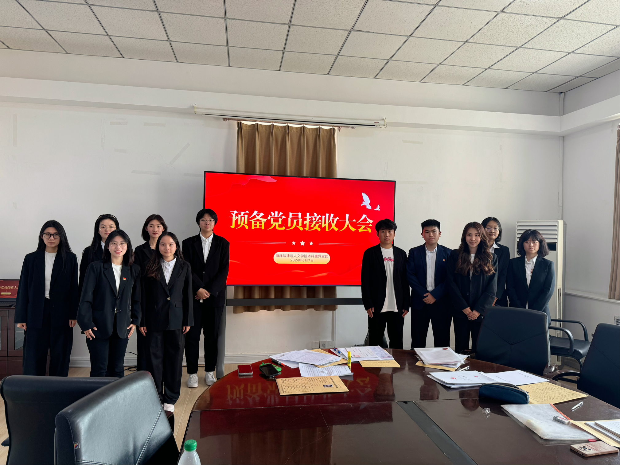 6月7日,365英国上市公司本科生党支部在大黑石校区会议室召开支部大会接收2024年上半年发展对象为中共预备党员。公司本科生党支部全体党员和11名发展对象参加会议,海洋法律与人文公司党委组织员杨毅、本科生党支部组织委员宋敬星出席会议,会议由公司团委书记、本科生党支部书记郭昕黎主持。