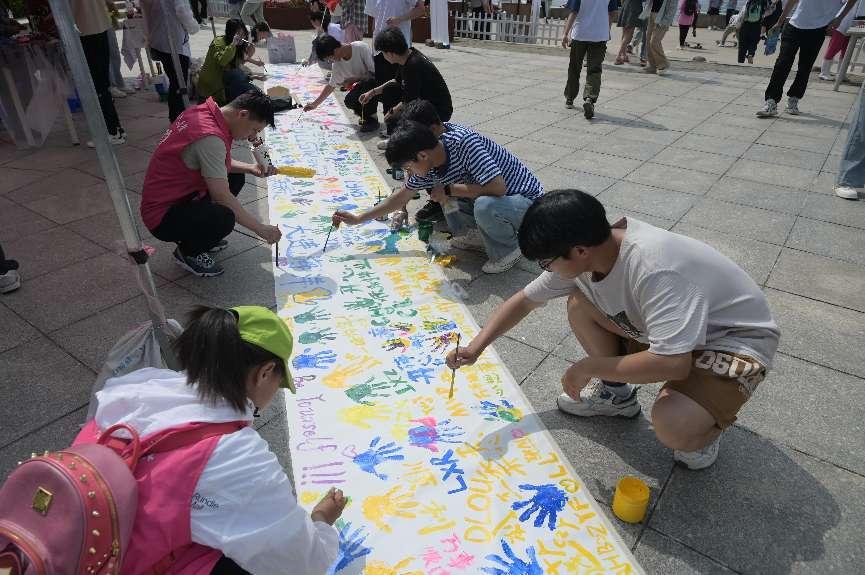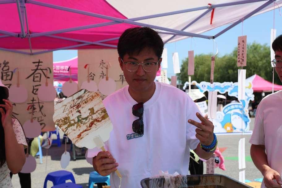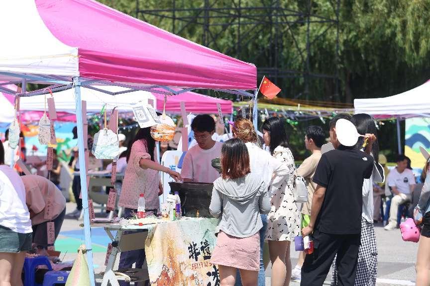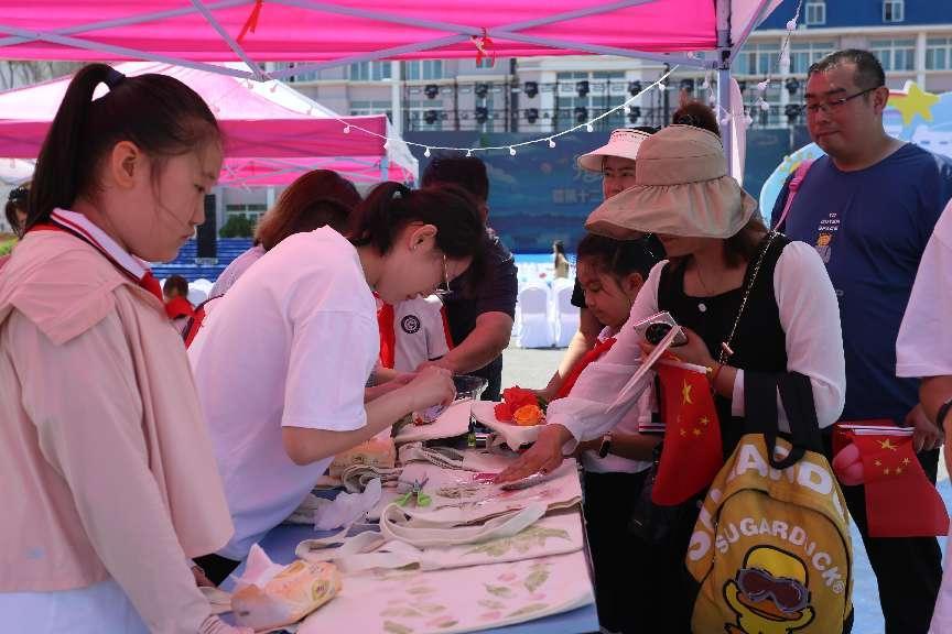 公司充分发挥视觉传达设计专业的特色和优势,策划设置了创意艺术展示区,包括共绘国旗区、非遗花草灯区、漆扇区、植物拓染区、指上添花区、艺术蓝谷区、拍照打卡区、迷宫寻宝区、砸金蛋区、遇见大连绘画区、创意蓝潮绘画区、头像涂鸦、涂鸦区和社团展示区14个模块,吸引了众多师生和校外嘉宾驻足观赏和参与体验。