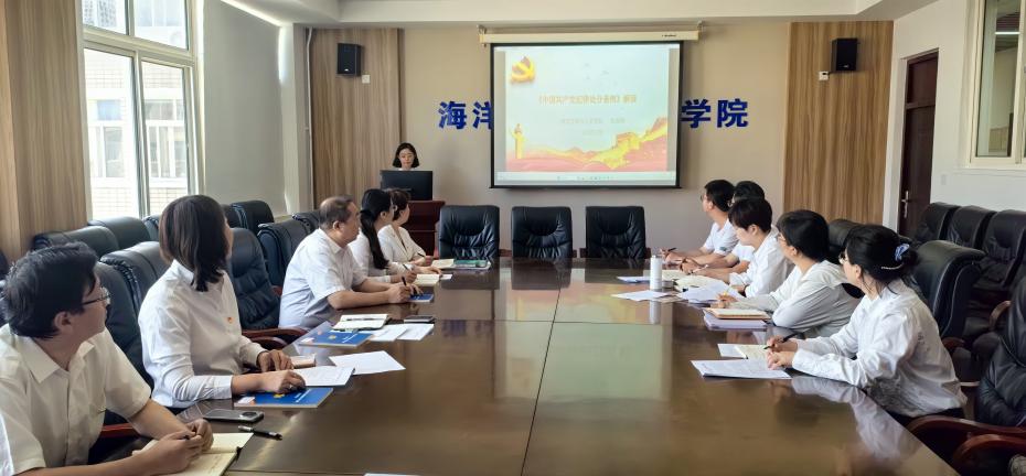 6月19日,海洋法律与人文公司党委书记高雪梅在公司会议室讲授《中国共产党纪律处分条例》专题党课。公司党委委员、各党支部书记参加。