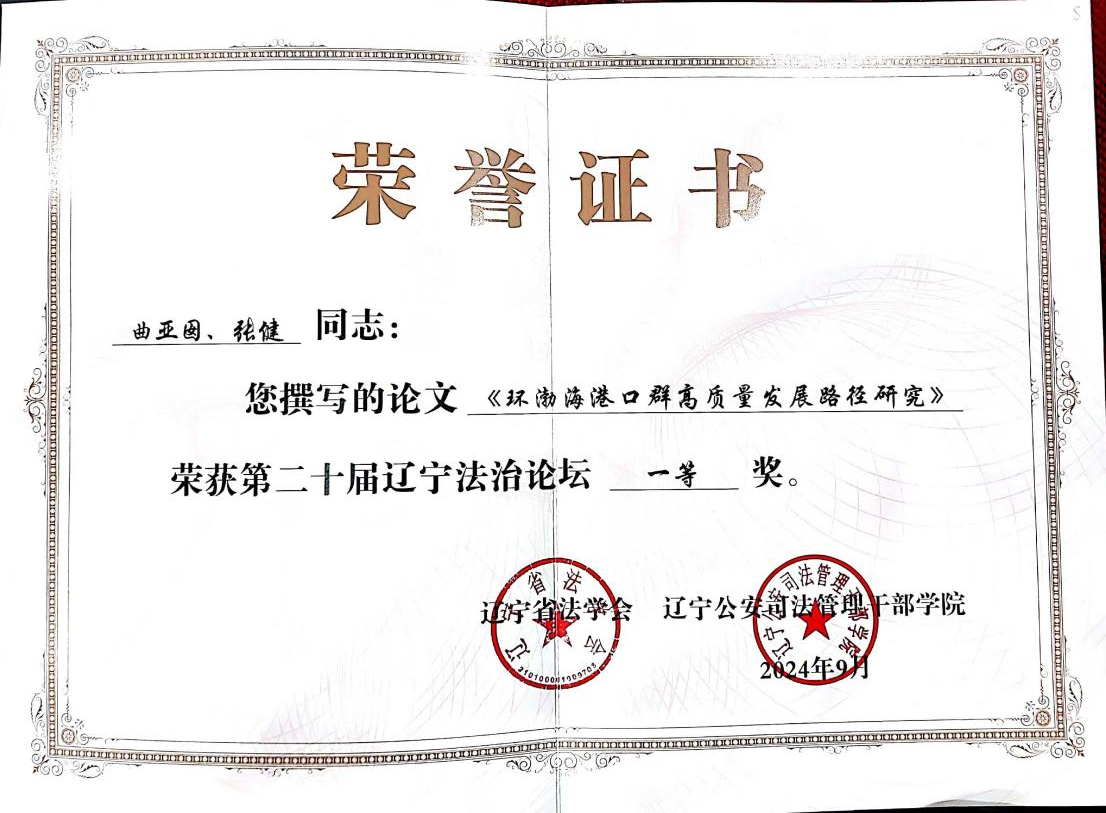 9月19日,由辽宁省法学会、辽宁公安司法管理干部公司共同主办的第二十届“辽宁法治论坛”在沈阳成功举办。公司365英国上市公司裴兆斌教授受邀参会并做点评,曲亚囡教授做《辽宁港口群发质量发展路径研究》的主题报告,多名师生在本次论坛中获奖。