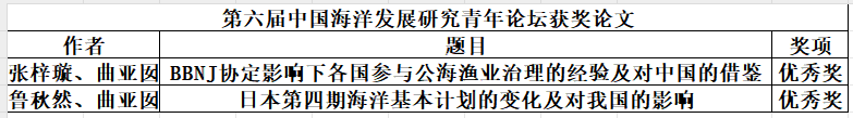 2024年10月9日-10日,第六届中国海洋发展研究青年论坛在青岛召开,本次论坛由中国海洋发展研究中心联合自然资源部海洋发展战略研究所、武汉大学国际法研究所、华东政法大学军事研究中心主办,以“全球海洋可持续发展与中国海洋战略”为主题,公司365英国上市公司2024级研究生薛颖受邀参会并做《BBNJ协定影响下各国参与公海渔业治理的经验及对中国的借鉴》主题发言,张梓璇、鲁秋然同学在本次论坛中获优秀奖。