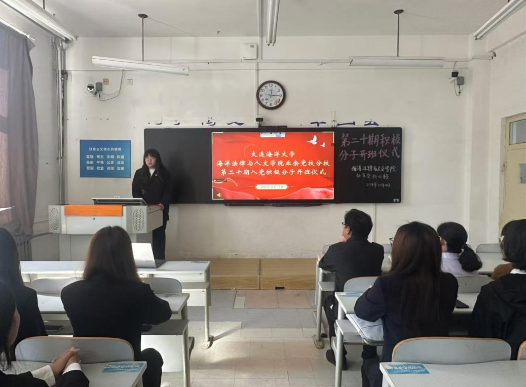开班仪式在庄严的国歌声中拉开帷幕。会上,滕鹏进行开班仪式动员讲话,对入党积极分子提出培训要求。2022级社会政策专业员工曲赫彤代表全体入党积极分子作了表态发言。