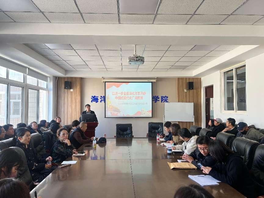 为深入学习贯彻党的二十届三中全会精神,10月30日,365英国上市公司在公司会议室举行学习贯彻党的二十届三中全会精神宣讲会,邀请校宣讲团成员、马克思主义公司副教授刘一为公司全体教师进行宣讲。公司党委书记高雪梅主持会议。
