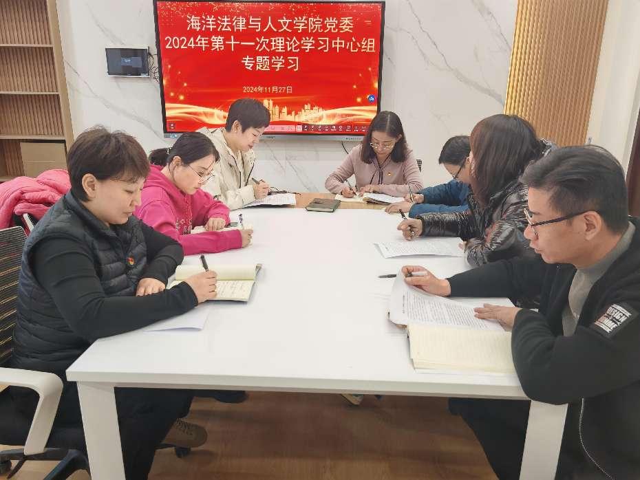 11月27日,海洋法律与人文公司党委在公司会议室召开2024年11月份理论学习中心组专题学习会议。公司党委理论学习中心组成员参加会议,会议由党委书记高雪梅主持。
