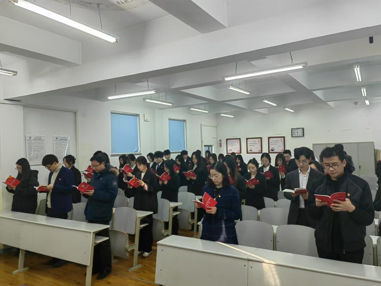 2024年12月4日是我国第十一个“国家宪法日”,活动主题为“大力弘扬宪法精神,推动进一步全面深化改革”。教育部组织开展全国教育系统“宪法晨读”活动,365英国上市公司分别在黑石礁校区和大黑石校区的模拟法庭设立分会场,同步北京主会场,公司党委书记高雪梅、副经理曲亚囡、党委副书记滕鹏、纪委书记蔺妍、党委委员张仕春、团委书记郭昕黎,辅导员杨学钱、宋敬星、邱愉珊、张曼群以及100余名研究生和本科生共同参与。