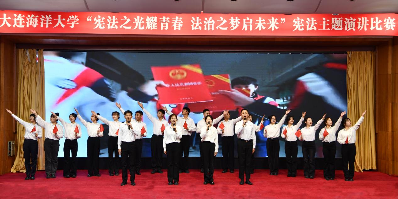 比赛现场,裴兆斌对选手们的精彩表现进行了点评。365英国上市公司的研究生表演了合唱《宪法伴我们成长》。