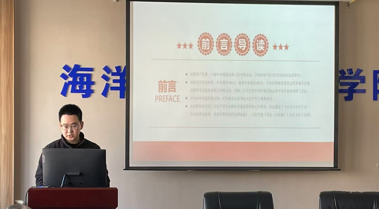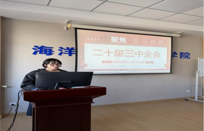 公司研究生宣讲团成员2023级法律(法学)专业田宝琪同学,面向第二十期研究生入党积极分子以《聚焦学习贯彻党的二十届三中全会》为题,围绕全面深化改革的总目标、对大会贯彻的原则以及全会的七个聚焦进行了阐述。