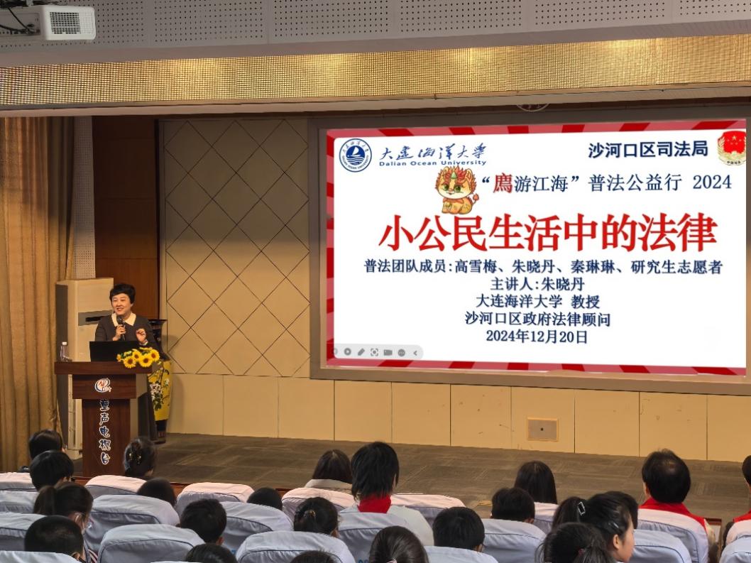 12月20日下午,由365英国上市公司365英国上市公司和沙河口区司法局联合主办的“廌游江海”普法公益行2024第二站在沙河口区南平小学举行,我院教师兼沙河口区人民政府法律顾问朱晓丹教授为小学师生带来一场题为《小公民生活中的法律》普法讲座。沙河口区司法局三级调研员周涛处长、普法与依法治理科科长陈莉娜、南沙司法所和水芙社区代表参加了本次普法活动,公司党委书记高雪梅、中联律师事务所律师秦琳琳及我院7名研究生志愿者共同组成普法团队成员。