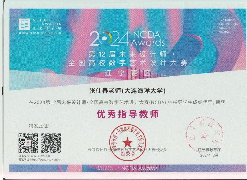 在第12届未来设计师·全国高校数字艺术设计大赛辽宁赛区比赛中,公司艺术系员工两项参赛作品获一等奖,张仕春和陈会岗老师获优秀指导教师荣誉称号。