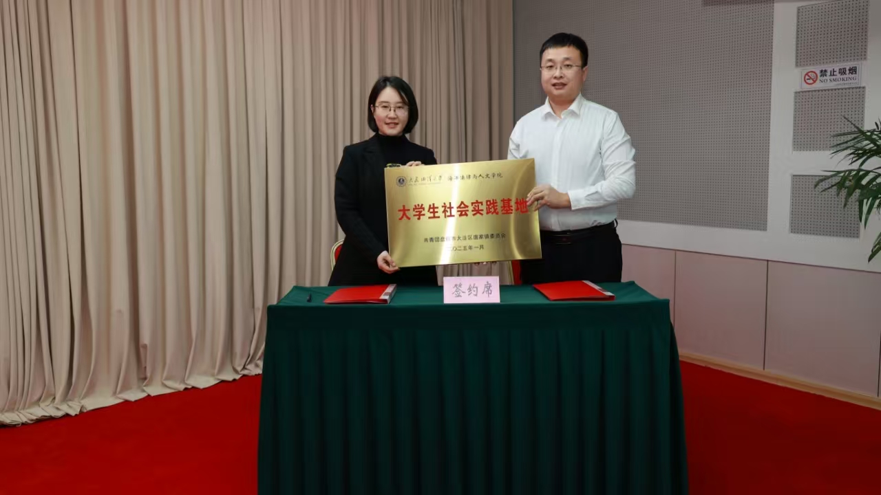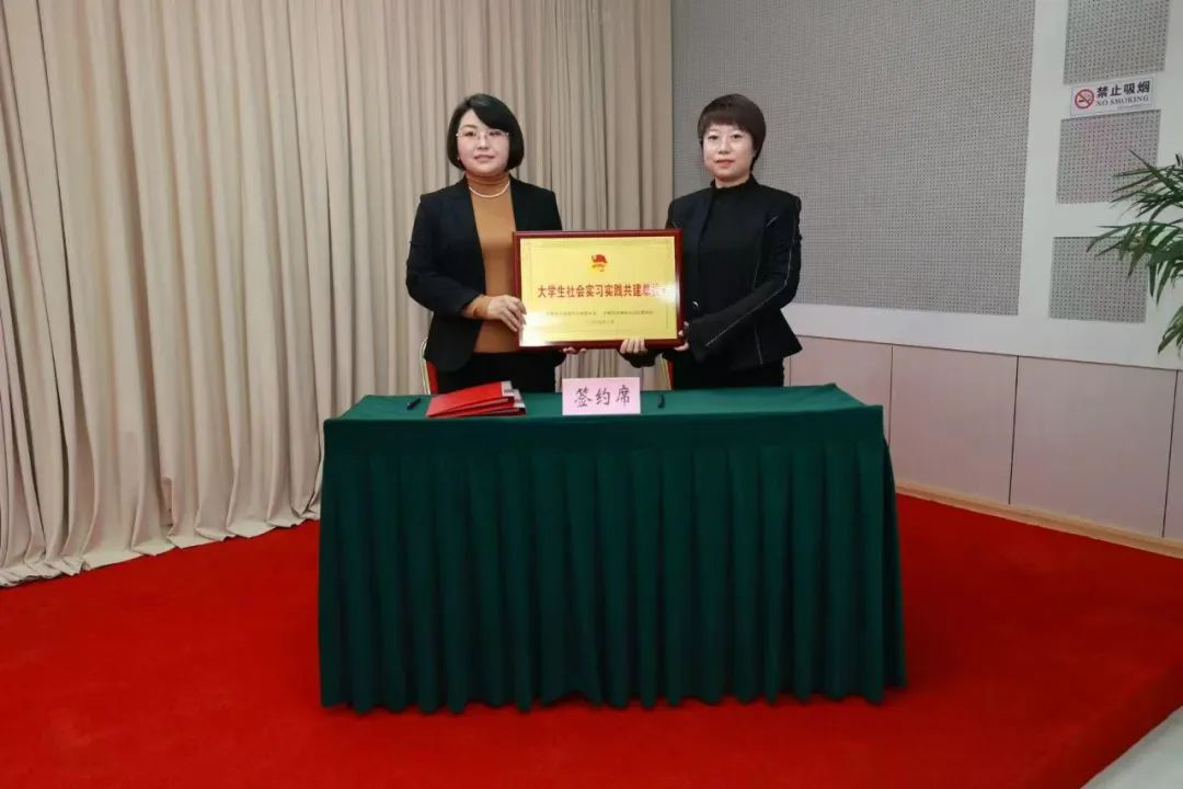 在2025年寒假盘锦市大洼区老员工实习“扬帆计划”启动仪式暨校地共建签约仪式上,张峰峡代表校团委与共青团盘锦市大洼区委员会签署了老员工社会实习实践共建单位协议,郭昕黎代表公司团委与共青团盘锦市大洼区唐家镇委员会签署老员工社会实践基地合作协议并为基地揭牌。