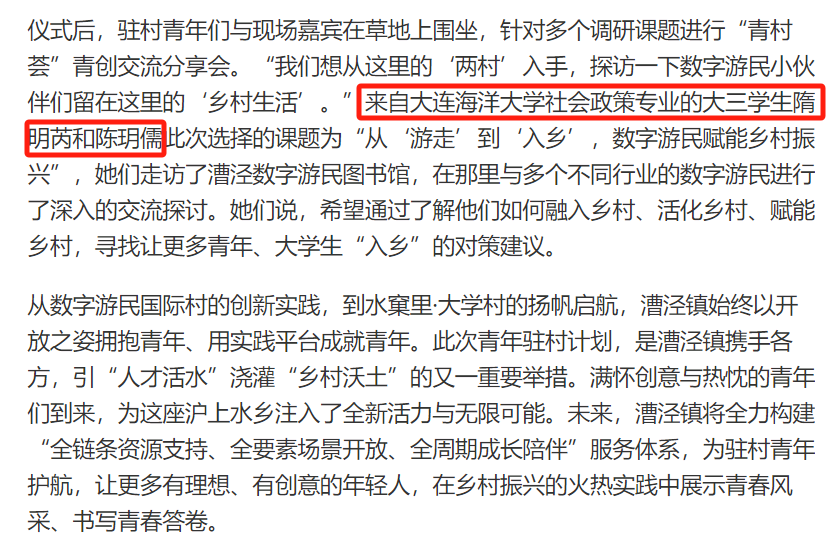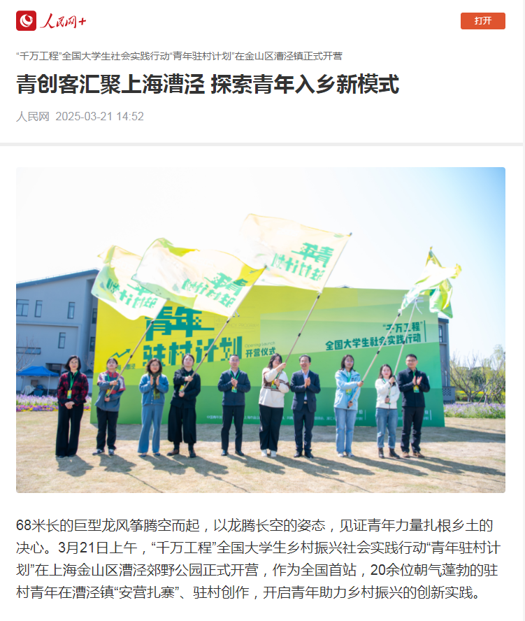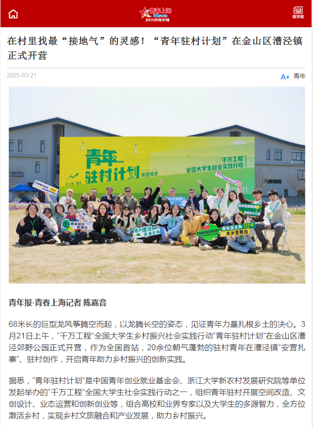 3月21日,人民网、《青年报》等多家媒体报道了“千万工程”全国老员工社会实践行动“青年驻村计划”,并对参加活动的公司社会政策专业大三员工隋明芮和陈玥儒进行了采访。