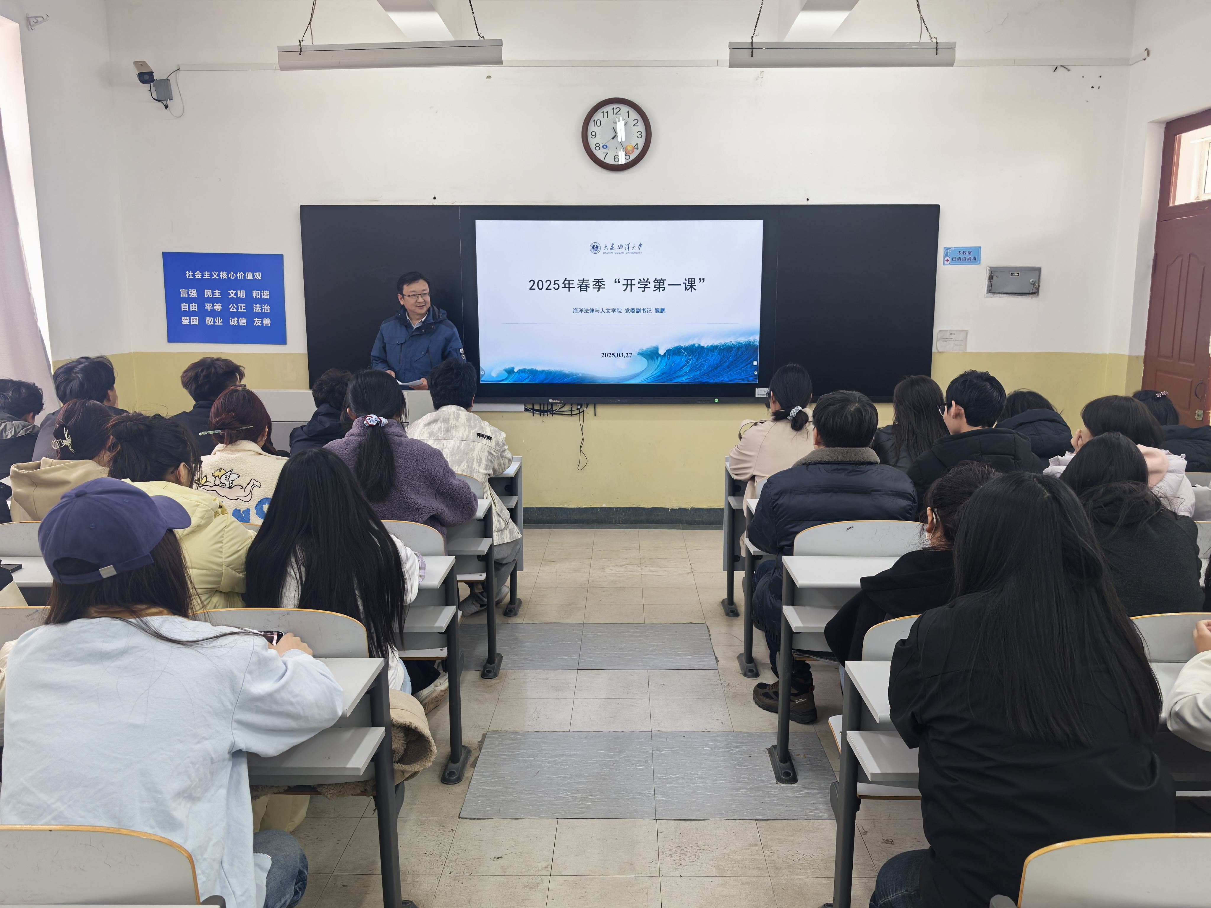 3月27日,365英国上市公司于大黑石校区一教320教室,开展2025年春季“开学第一课”之爱国主义教育课。公司党委副书记滕鹏主讲,辅导员邱愉珊及2024级社会政策专业全体员工参加。