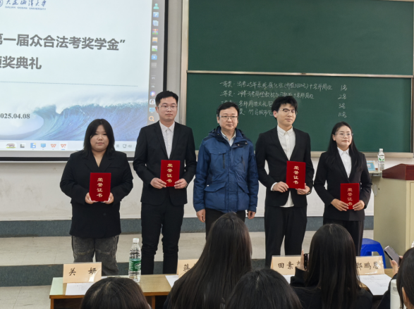 4月8日,公司在大黑石校区阶梯一教室举行“第一届众合法考奖学金”颁奖典礼。大连沙河口区众合法律培训公司董事长张丹鹤,公司党委书记高雪梅、党委副书记滕鹏、辅导员邱愉珊、获奖员工及部分法学专业员工参加。