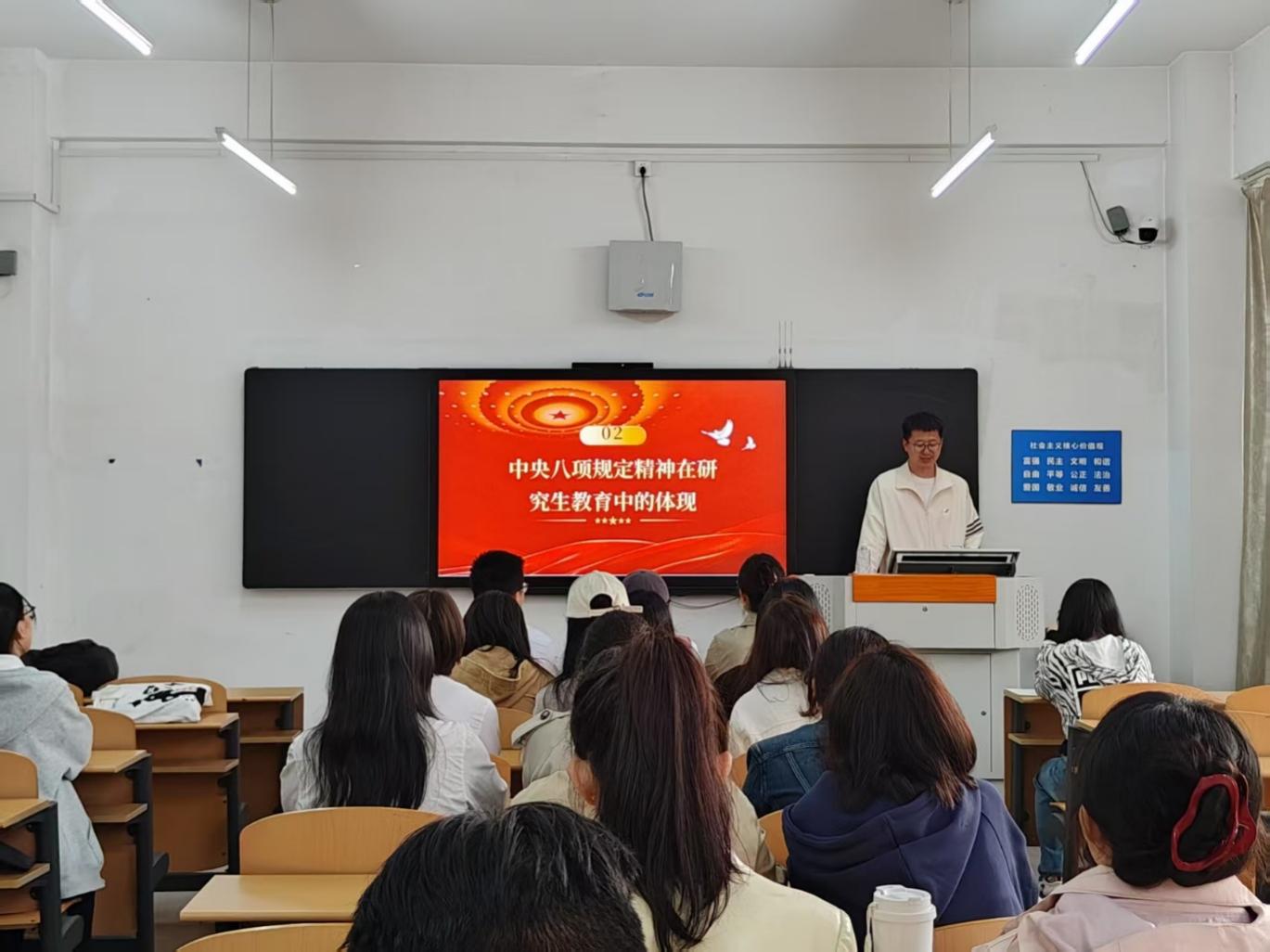 杨学钱强调,全体党员以“永远在路上”的政治自觉,将中央八项规定精神贯穿于学习、科研各环节。要求研究生党员在学习科研中带头遵守校规校纪,杜绝学习与科研中的形式主义;引导党员树立正确价值观,坚守学术规范底线;为培养新时代人才提供坚强保障。