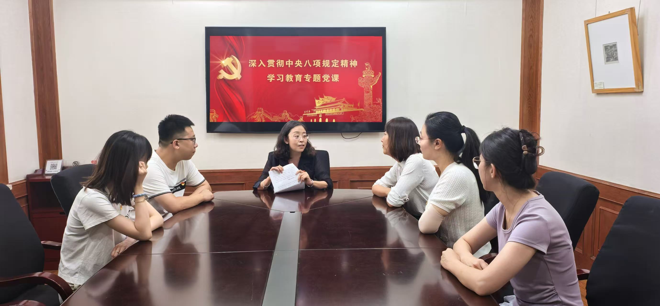 7月1日,公司党委书记高雪梅以《八项规定改变中国》为主题,为法律系党支部党员讲授专题党课。