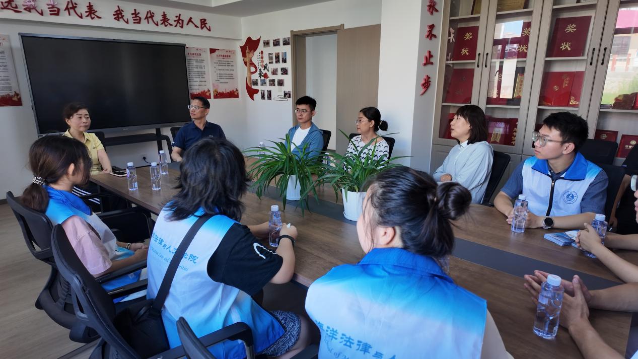 在长海县司法局小长山司法所,公司师生同县司法局有关负责同志开展座谈交流,就《社区矫正法》实施五周年取得的实效以及通过基层矛盾化解案例实行普法等进行了分享。