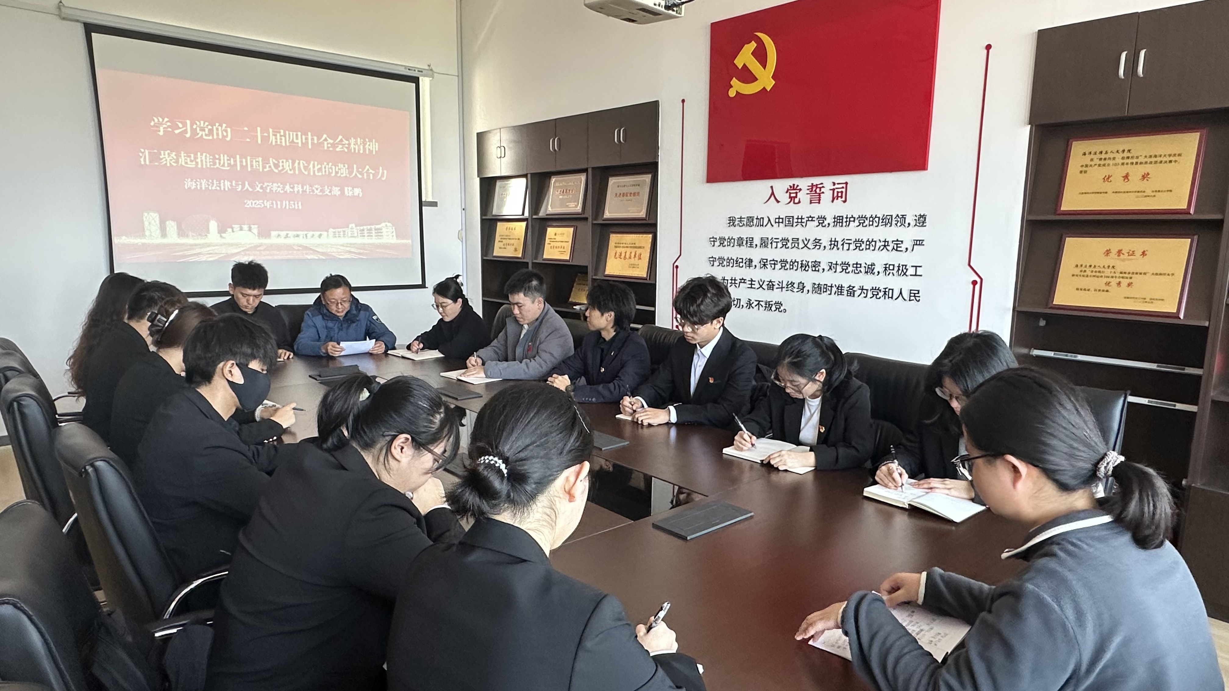 11月5日,公司本科生党支部在大黑石校区党员活动室召开专题学习会议,传达学习党的二十届四中全会精神并开展交流研讨。会议由公司党委副书记、本科生党支部书记滕鹏主持,团委书记郭昕黎,辅导员张恒毅、郭艳丽和全体在校本科生党员参加。