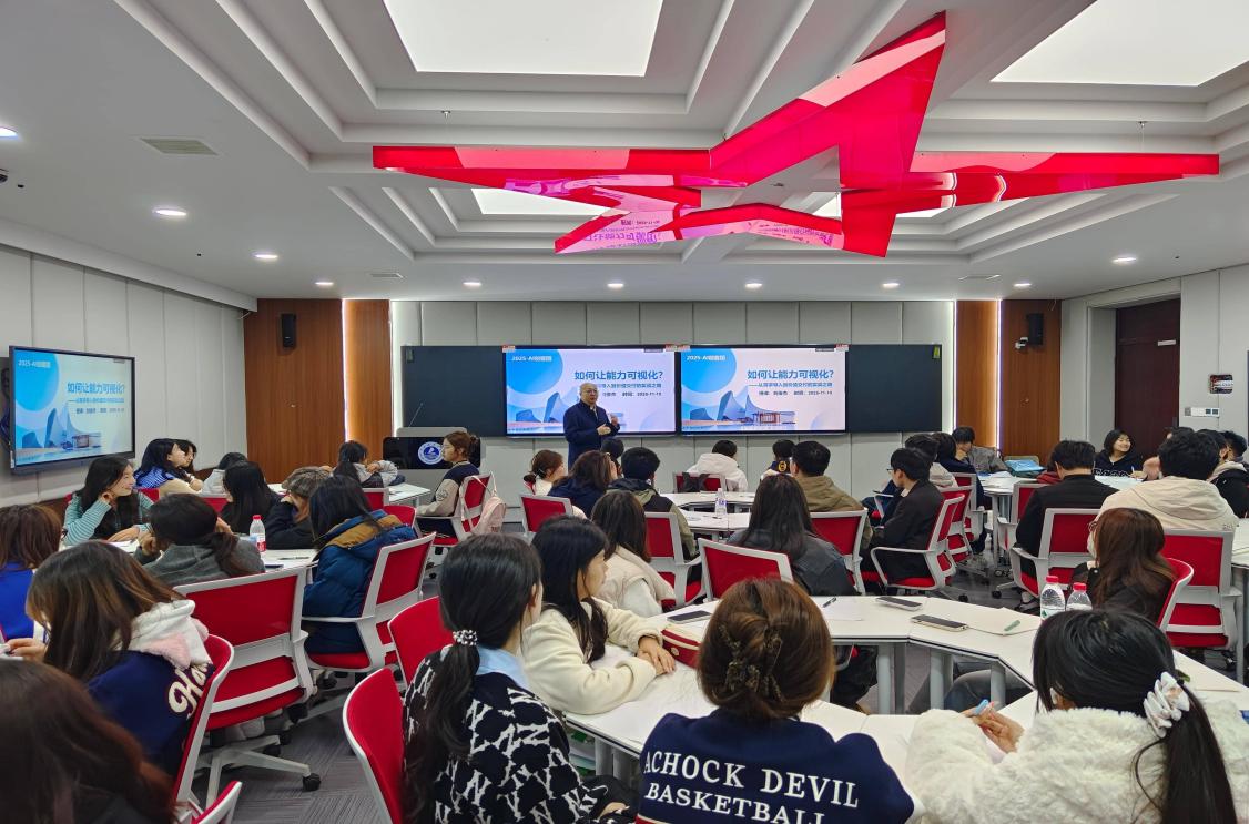 讲座中,刘老师重点强调了人工智能在当代职场中的关键作用。他提出,AI不仅是工具,更是能力可视化的催化剂。通过“AI+”多元场景的实战训练,员工可以快速构建个人品牌、提升职业竞争力,实现“学在实处,练在真处”。